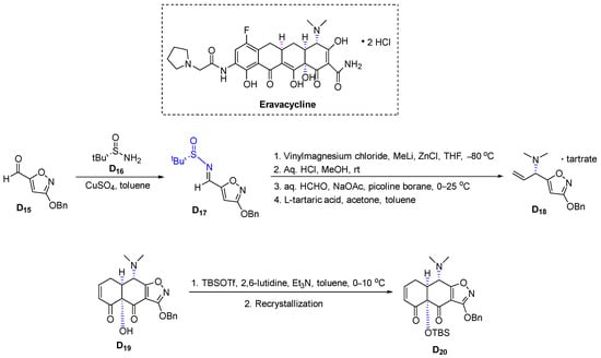 - Zhang, W.-Y.; Che, Q.; Crawford, S.; Ronn, M.; Dunwoody, N. A Divergent Route to Eravacycline. J. Org. Chem. 2017, 82, 936–943. [Google Scholar] [CrossRef]