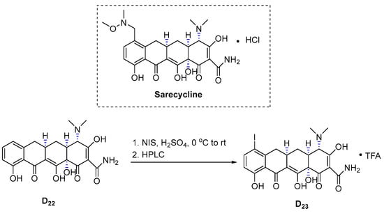 - Johnston, S.; Warchol, T. Methods for Synthesizing and Purifying Aminoalkyl Tetracycline Compounds. WO2008134048A1, 6 November 2008. [Google Scholar]