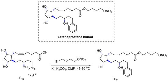 - Ongini, E.; Benedini, F.; Chiroli, V.; Del Soldato, P. Preparation of Prostaglandin Nitrooxy Derivatives for the Treatment of Glaucoma. WO 2005068421, 9 February 2006. [Google Scholar]