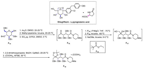 - Bowles, P.; Brenek, S.J.; Caron, S.; Do, N.M.; Drexler, M.T.; Duan, S.; Dube, P.; Hansen, E.C.; Jones, B.P.; Jones, K.N.; et al. Commercial Route Research and Development for Sglt2 Inhibitor Candidate Ertugliflozin. Org. Process Res. Dev. 2014, 18, 66–81. [Google Scholar] [CrossRef]