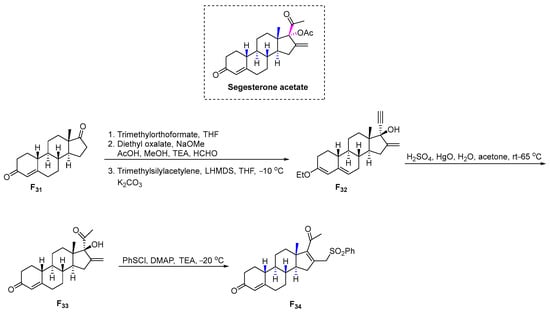 - Mehrhof, W.; Irmscher, K.; Erb, R.; Pohl, L. Synthesewege Zum 17a-Hydroxy-16-Methylen-19-nor-Progesteron Und Seinen Derivaten. Chem. Ber. 1969, 102, 643–658. [Google Scholar] [CrossRef]