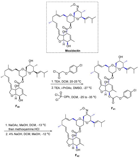 - Dai, Y.; Du, Z.; Wang, R. Preparation of Moxidectin. CN104017001B, 13 January 2016. [Google Scholar]