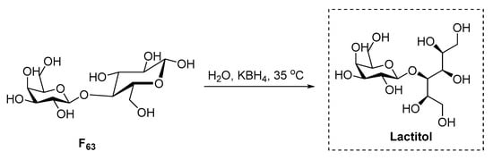 - Sun, T.J.; Yang, J.; Lu, H.G.; Zhao, W.J.; Feng, J.P.; Gao, L.H.; Zhu, N.Q.; Zhang, H.Y.; Huo, H.H.; Zhang, Y.B. Preparation of Lactitol. CN101481395, 31 August 2011. [Google Scholar]