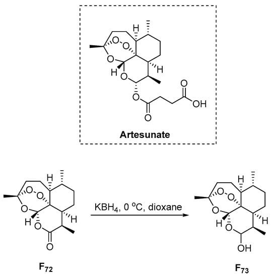 - Dong, P.X.; Mei, Z.; Zhao, Z.J.; Yi, Y.Y. Simple Process for Preparing Artesunate by One-Pot Method by Taking Artemisinin as Raw Material. CN 102887908, 23 January 2013. [Google Scholar]