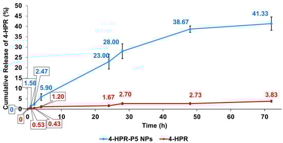 2.5. In Vitro Release Profile of 4-HPR from 4-HPR-P5 NPs