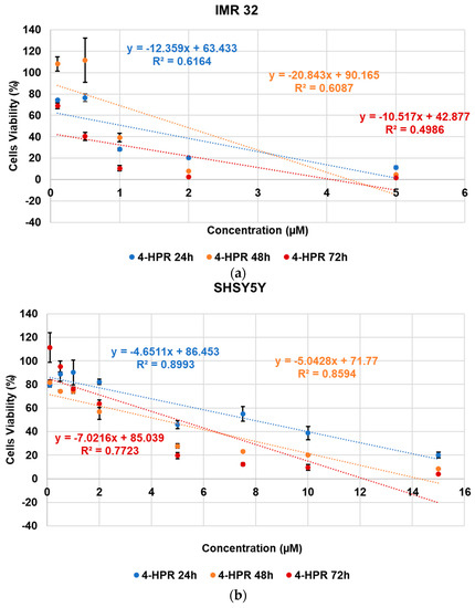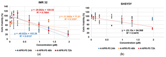 2.6. Cytotoxic Activity of 4-HPR and 4-HPR-P5 NPs on Neuroblastoma Cell Lines