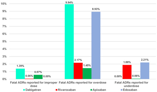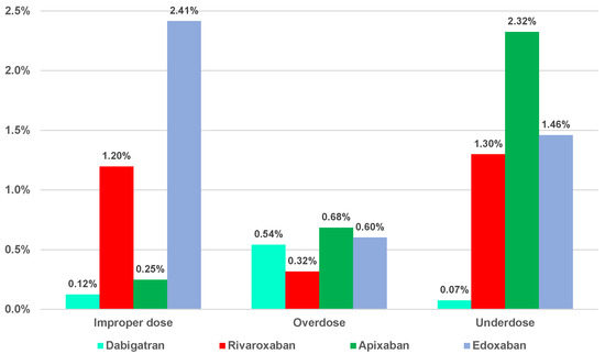 APA StyleMorgovan, C., Dobrea, C. M., Chis, A. A., Juncan, A. M., Arseniu, A. M., Rus, L. L., Gligor, F. G., Ardelean, S. A., Stoicescu, L., Ghibu, S., & Frum, A. (2023). A Descriptive Analysis of Direct Oral Anticoagulant Drugs Dosing Errors Based on Spontaneous Reports from the EudraVigilance Database. Pharmaceuticals, 16(3), 455. https://doi.org/10.3390/ph16030455