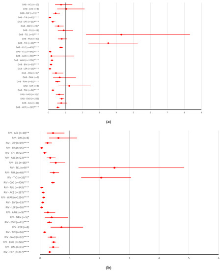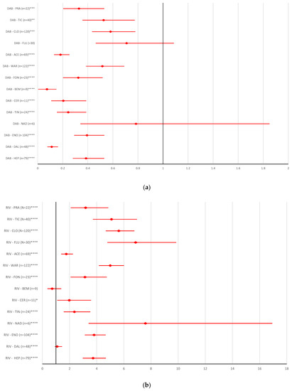 - European Medicines Agency. Assessment Report. Procedure under Article 5(3) of Regulation (EC) No 726/2004 INN/Active Substance: Dire+ct Oral Anticoagulants (DOACs) Procedure Number: EMEA/H/A-5(3)/1487. Available online: https://www.ema.europa.eu/en/documents/referral/assessment-report-article-53-procedure-direct-oral-anticoagulants-doacs_en.pdf (accessed on 20 February 2023).