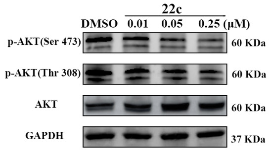 Figure 3. Compound 22c inhibited phosphorylation of PI3K downstream effectors AKT in HCT-116 cells.