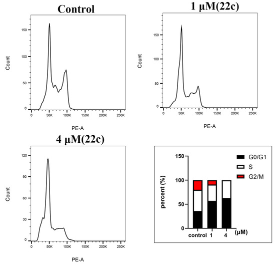 Figure 5. Flow cytometry analysis of cell cycle arrest of HCT-116 cells via PI staining after treatment with compound 22c at indicated concentration for 24 h.