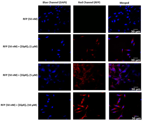 3.3. Cell Culture and Cytotoxicity Assay of [WR]9-Protein Physical Mixture and [DipR]5-Protein Physical Mixture