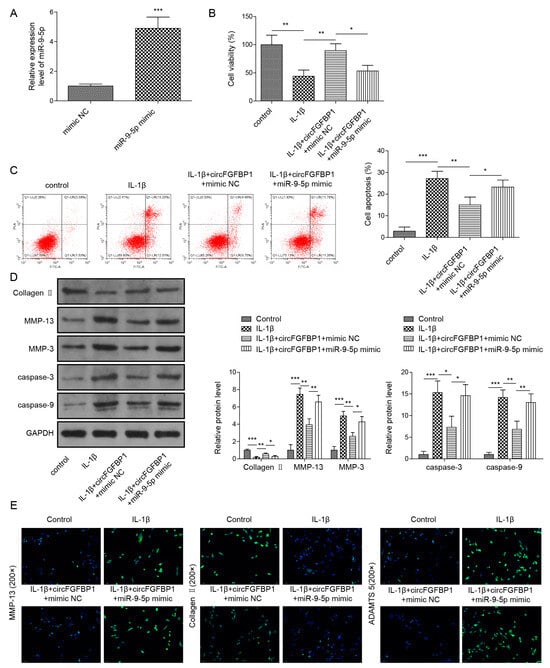 2.5. MiR-9-5p Partially Reverses Apoptosis and ECM Degradation Inhibited by circFGFBP1 Upregulation in NP Cells