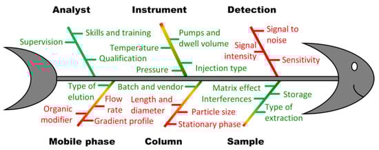 - Ferey, L.; Raimbault, A.; Rivals, I.; Gaudin, K. UHPLC Method for Multiproduct Pharmaceutical Analysis by Quality-by-Design. J. Pharm. Biomed. Anal. 2018, 148, 361–368. [Google Scholar] [CrossRef]