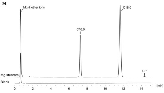 - Risley, D.S.; Magnusson, L.-E.; Morow, P.R.; Aburub, A. Analysis of Magnesium from Magnesium Stearate in Pharmaceutical Tablet Formulations Using Hydrophilic Interaction Liquid Chromatography with Nano Quantity Analyte Detection. J. Pharm. Biomed. Anal. 2013, 78–79, 112–117. [Google Scholar] [CrossRef]