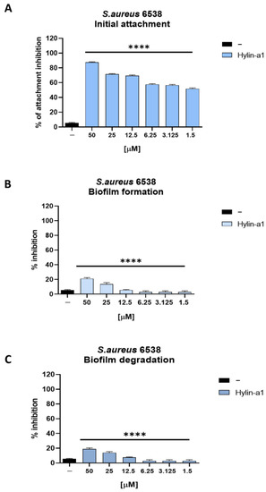 - Castro, M.S.; Ferreira, T.C.; Cilli, E.M.; Crusca, E., Jr.; Mendes-Giannini, M.J.; Sebben, A.; Ricart, C.A.; Sousa, M.V.; Fontes, W. Hylin a1, the first cytolytic peptide isolated from the arboreal South American frog Hypsiboas albopunctatus (“spotted treefrog”). Peptides 2009, 30, 291–296. [Google Scholar] [CrossRef]