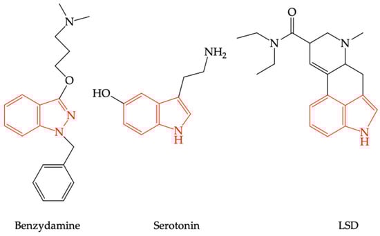 Due to the structural analogy between benzydamine and lysergic acid diethylamide (LSD) (see Figure 3), it has been speculated that benzydamine could act as a serotoninergic 5-HT2A receptor agonist (5-HT2AR) [39].
