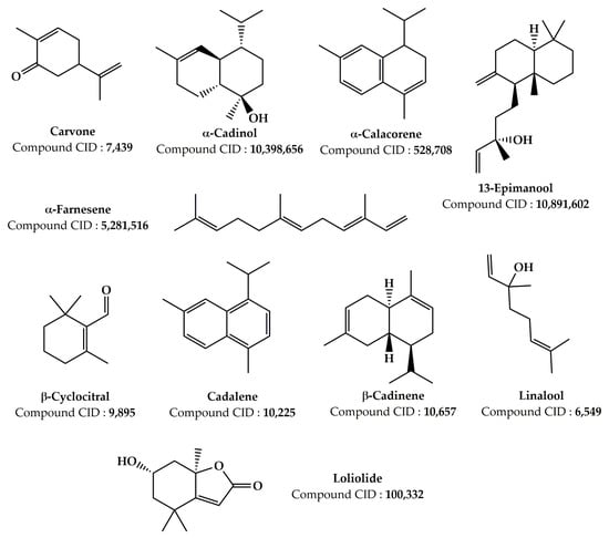 Chemical structures of the terpene compounds detected in the Z. lotus extracts.