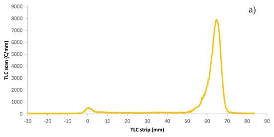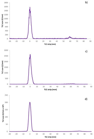 43], the strip was placed on the radio TLC scanner. In these conditions, free astatine migrates to the frontline while the effector molecule stays in the deposit spot, as shown in