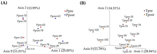 2.2.2. Microbiome Similarity and Variance (Beta-Diversity)