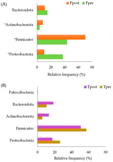 - Ley, R.E.; Bäckhed, F.; Turnbaugh, P.; Lozupone, C.A.; Knight, R.D.; Gordon, J.I. Obesity alters gut microbial ecology. Proc. Natl. Acad. Sci. USA 2005, 102, 11070–11075. [Google Scholar] [CrossRef] [PubMed]