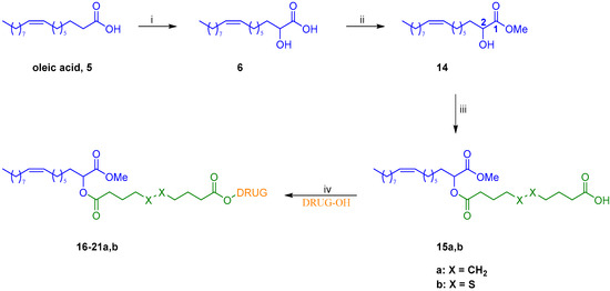 2.1. Synthesis of Drug-Methyl Oleate Conjugates
