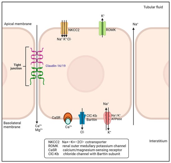 - Godron, A.; Harambat, J.; Boccio, V.; Mensire, A.; May, A.; Rigothier, C.; Couzi, L.; Barrou, B.; Godin, M.; Chauveau, D.; et al. Familial hypomagnesemia with hypercalciuria and nephrocalcinosis: Phenotype-genotype correlation and outcome in 32 patients with CLDN16 or CLDN19 mutations. Clin. J. Am. Soc. Nephrol. 2012, 7, 801–809. [Google Scholar] [CrossRef] [PubMed]