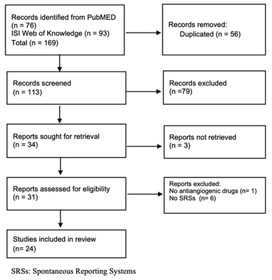 All studies using SRSs to evaluate safety of antiangiogenic drugs used in patients with tumors were included. Eligible studies had to be written in English and studies with no full text available were excluded.