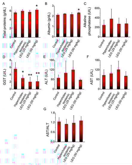 4.2.3. Effect of LEG on Liver Function