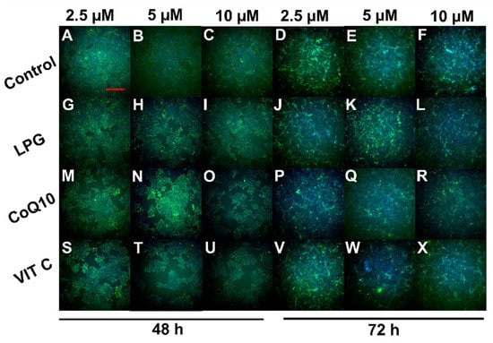 4.3.3. Evaluation of Vero Cell Viability by the LIVE/DEADTM Viability/Cytotoxicity Kit