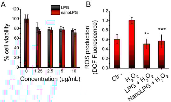 2.5. Cytotoxic and Antioxidant Effects of LPG and nanoLPG on Human Keratinocytes