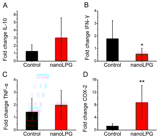 4.6. Effect of nanoLPG on Immune-Related Gene Expression in Human Peripheral Blood Mononuclear Cells (PBMCs)