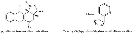 - Coutouli-Argropoulou, E.; Pilanidou, P. An entry to new isoxazoline analogues of dideoxynucleosides by bromonitrile oxide 1,3-dipolar cycloaddition. Tetrahedron Lett. 2003, 44, 3755–3758. [Google Scholar] [CrossRef]