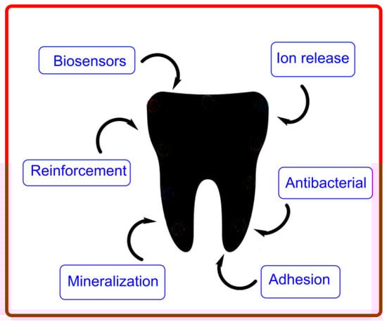 - Bonilla-Represa, V.; Abalos-Labruzzi, C.; Herrera-Martinez, M.; Guerrero-Pérez, M.O. Nanomaterials in Dentistry: State of the Art and Future Challenges. Nanomaterials 2020, 10, 1770. [Google Scholar] [CrossRef]