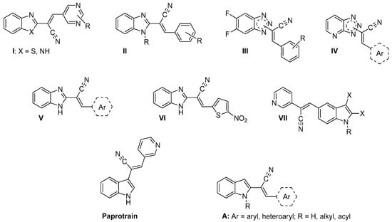 Structures of heteroaryl-acrylonitriles reported and studied in this work.