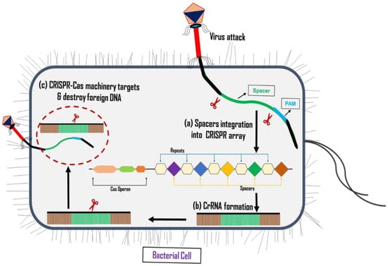 - Nussenzweig, P.M.; Marraffini, L.A. Molecular mechanisms of CRISPR-Cas immunity in bacteria. Annu. Rev. Genet. 2020, 54, 93–120. [Google Scholar] [CrossRef]