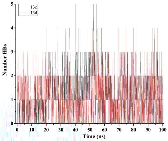 The number of average hydrogen bonding interactions between receptor-hybrids (13c and 13d).