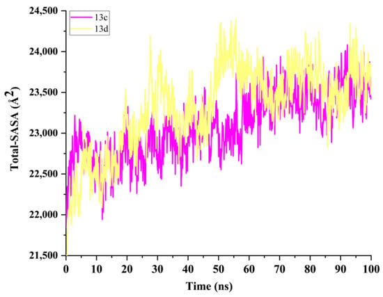 Solvent accessible surface area (SASA) analysis for receptor-hybrids (13c and 13d).