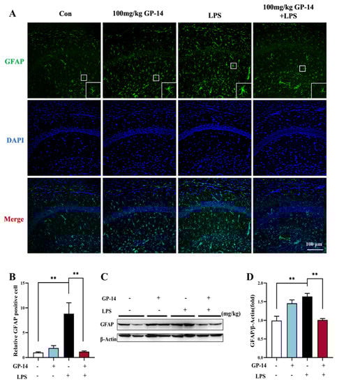 2.5. GP-14 Inhibited LPS-Induced Activation of Astrocytes