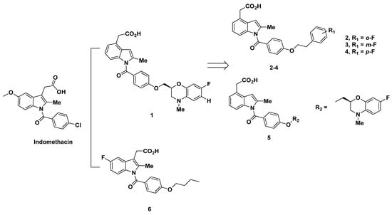 In light of the correlation of PGD2 with allergic diseases, Torisu et al. at Ono Pharmaceutical Co developed a series of human prostaglandin D2 receptor antagonists in 2004 [63]. Among the antagonists, compounds 1–4 were created with a 4-position acetic acid residue from N-benzoyl-2-methylindole and change in the p-alkoxy moiety, corresponding to the lipophilic moiety of PGD2 receptors (Figure 2).