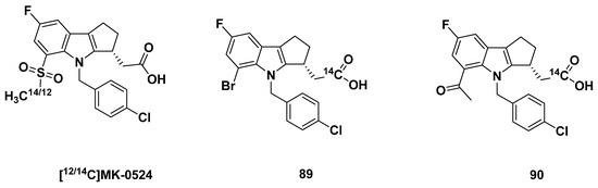 - Karanam, B.; Madeira, M.; Bradley, S.; Wenning, L.; Desai, R.; Soli, E.; Schenk, D.; Jones, A.; Dean, B.; Doss, G.; et al. Absorption, metabolism, and excretion of [14C]MK-0524, a prostaglandin D2 receptor antagonist, in humans. Drug Metab. Dispos. 2007, 35, 1196–1202. [Google Scholar] [CrossRef] [PubMed]