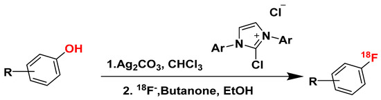- Preshlock, S.; Tredwell, M.; Gouverneur, V. 18F-Labeling of Arenes and Heteroarenes for Applications in Positron Emission Tomography. Chem. Rev. 2016, 116, 719–766. [Google Scholar] [CrossRef] [PubMed]