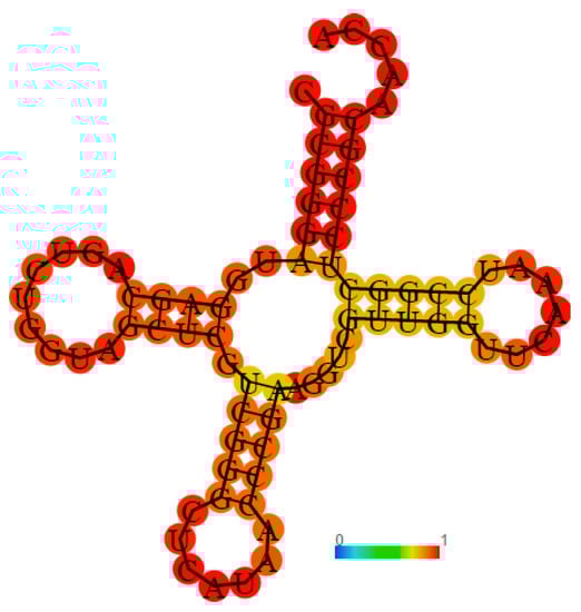 - Zuker, M.; Stiegler, P. Optimal Computer Folding of Large RNA Sequences Using Thermodynamics and Auxiliary Information. Nucleic Acids Res. 1981, 9, 133–148. [Google Scholar] [CrossRef]