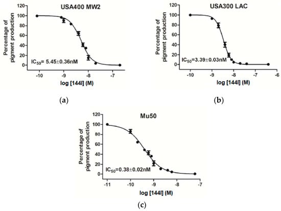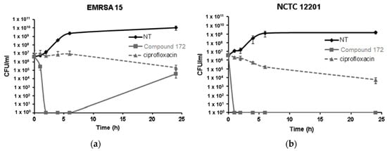 - Wang, Y.; Chen, F.; Di, H.; Xu, Y.; Xiao, Q.; Wang, X.; Wei, H.; Lu, Y.; Zhang, L.; Zhu, J.; et al. Discovery of potent benzofuran-derived diapophytoene desaturase (CrtN) inhibitors with enhanced oral bioavailability for the treatment of methicillin-resistant Staphylococcus aureus (MRSA) infections. J. Med. Chem. 2016, 59, 3215–3230. [Google Scholar] [CrossRef] [PubMed]