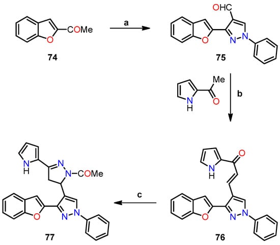 - Abd El-Karim, S.S.; Anwar, M.M.; Mohamed, N.A.; Nasr, T.; Elseginy, S.A. Design, synthesis, biological evaluation and molecular docking studies of novel benzofuran–pyrazole derivatives as anticancer agents. Bioorg. Chem. 2015, 63, 1–12. [Google Scholar] [CrossRef] [PubMed]