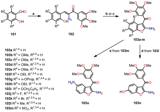 - Romagnoli, R.; Baraldi, P.G.; Salvador, M.K.; Prencipe, F.; Lopez-Cara, C.; Schiaffino Ortega, S.; Brancale, A.; Hamel, E.; Castagliuolo, I.; Mitola, S.; et al. Design, synthesis, in vitro, and in vivo anticancer and antiangiogenic activity of novel 3-arylaminobenzofuran derivatives targeting the colchicine site on tubulin. J. Med. Chem. 2015, 58, 3209–3222. [Google Scholar] [CrossRef]