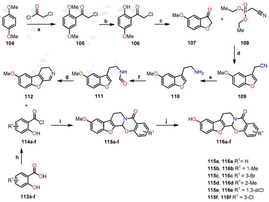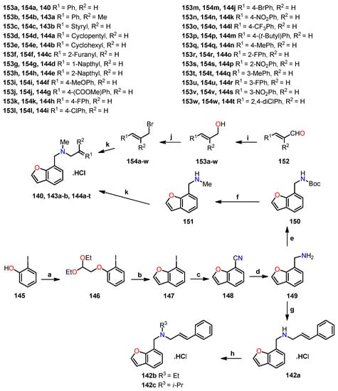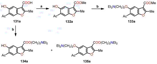 - Ostrowska, K.; Hejchman, E.; Wolska, I.; Kruszewska, H.; Maciejewska, D. Microwave-assisted preparation and antimicrobial activity of O-alkylamino benzofurancarboxylates. Monatsh. Chem. 2013, 144, 1679–1689. [Google Scholar] [CrossRef][Green Version]
