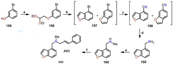- Kadieva, M.G.; Oganesyan, É.T. Methods for the synthesis of benzofuran derivatives. Chem. Heterocycl. Compd. 1997, 33, 1245–1258. [Google Scholar] [CrossRef]