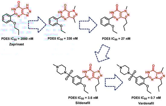 - Reddy, G.L.; Dar, M.I.; Hudwekar, A.D.; Mahajan, P.; Nargotra, A.; Baba, A.M.; Nandi, U.; Wazir, P.; Singh, G.; Vishwakarma, R.A. Design, synthesis and biological evaluation of pyrazolopyrimidinone based potent and selective PDE5 inhibitors for treatment of erectile dysfunction. Bioorg. Chem. 2019, 89, 103022. [Google Scholar] [CrossRef]