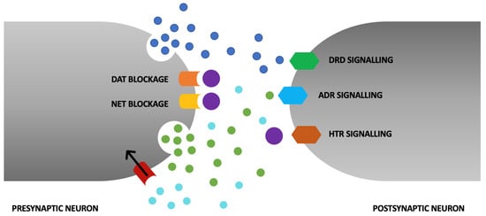 - Claire, A. Update on amphetamine neurotoxicity and its relevance to the treatment of ADHD. J. Atten. Disord. 2007, 11, 8–16. [Google Scholar] [CrossRef]