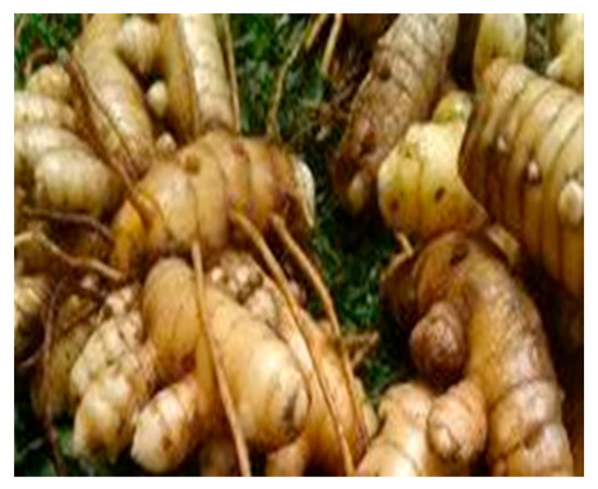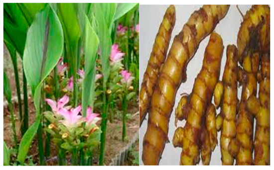 Other plants from the Zingiberaceae family widely used by the SAD community for skincare during traditional ceremonies are C. zedoaria and C. longa. The phytochemical compound contained in these plants is curcumin. Curcumin, a natural polyphenol extracted from C. zedoaria and C. longa, exhibits various biological activities, including antioxidant activity [40]. Figure 4 shows images of C. zedoaria and C. longa.